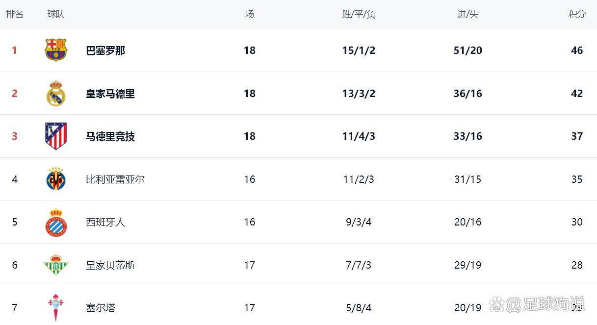 随着巴萨2-0,贝蒂斯4-0,马竞3-0,西甲最新积分榜出炉
